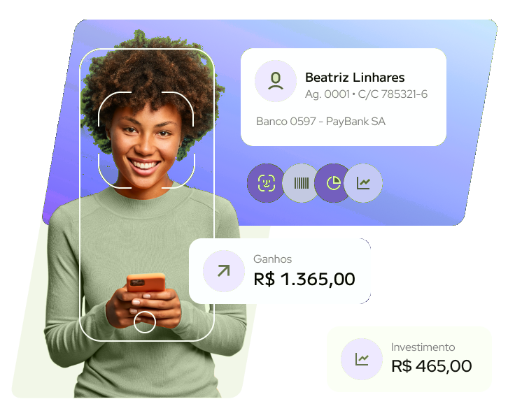 Acesse o app Paybank e resolva tudo pelo app, desde o seu controle financeiro, investimentos, câmbio, cartão de crédito, pagamentos de contas e muito mais.